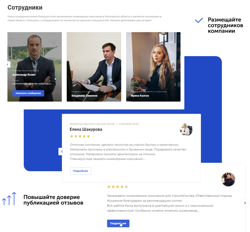Расскажите о сотрудниках компании, разместите отзывы о компании.