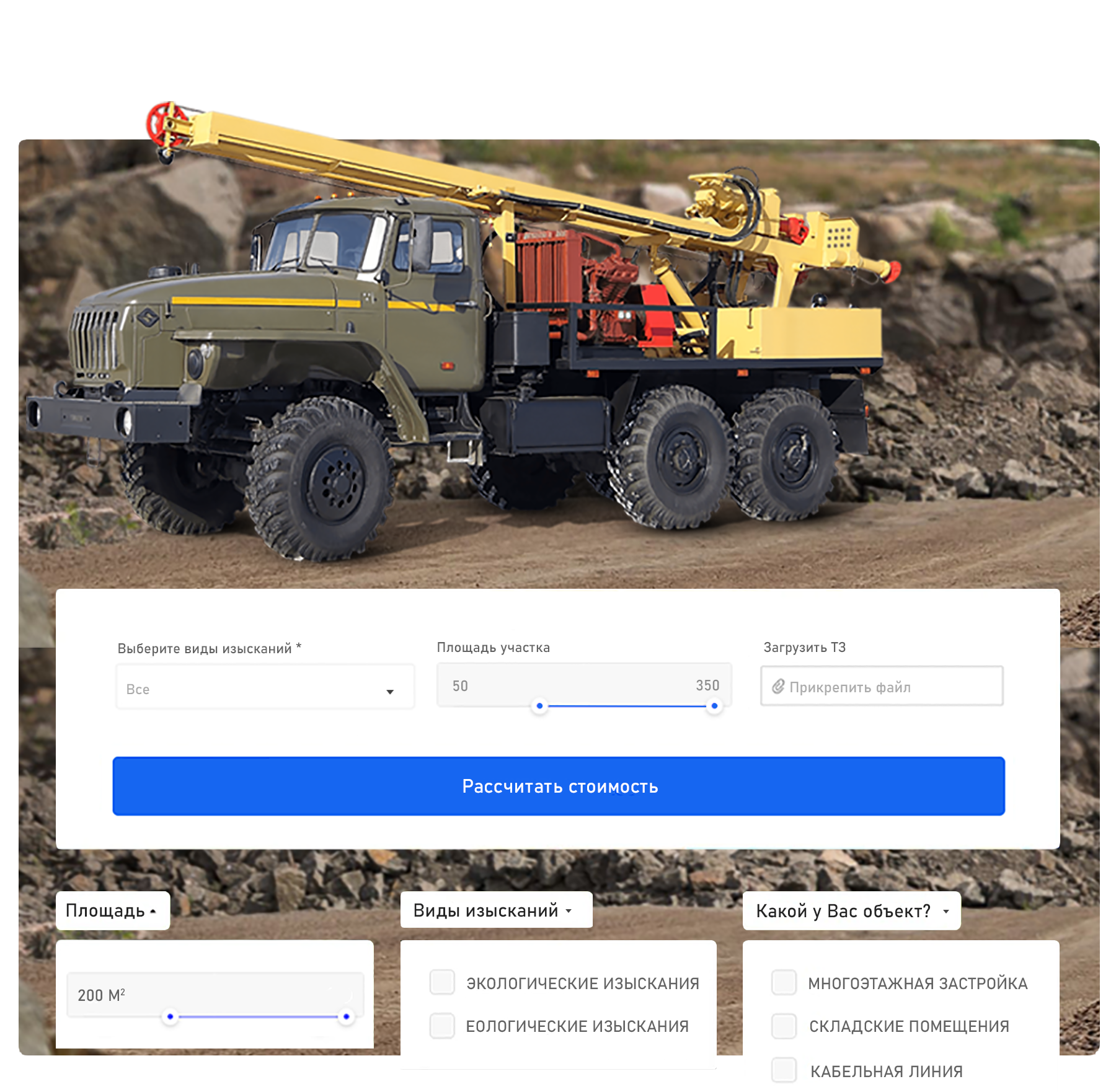 Расчет стоимости с возможностью прикрепить техническое задание