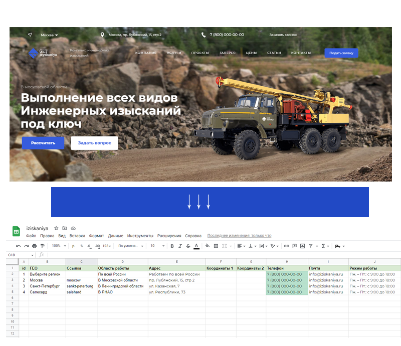 Редактирование с Google Таблицы
